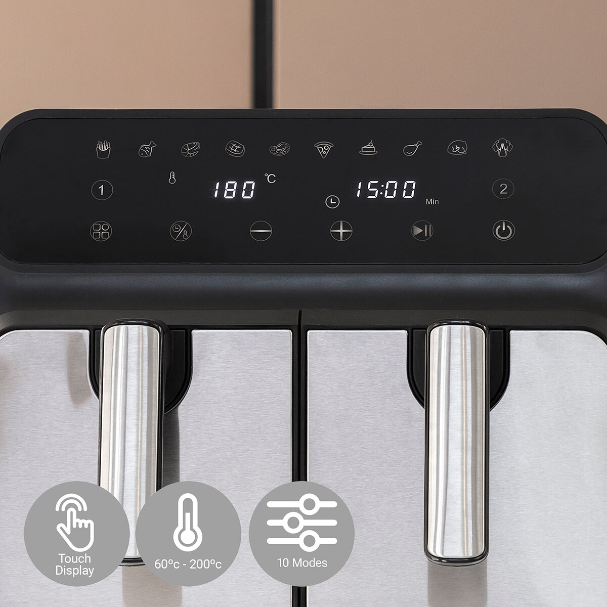 Fritadeira de Ar InnovaGoods Fryinn Double 8000 Preto 3400 W 8 L Aço inoxidável