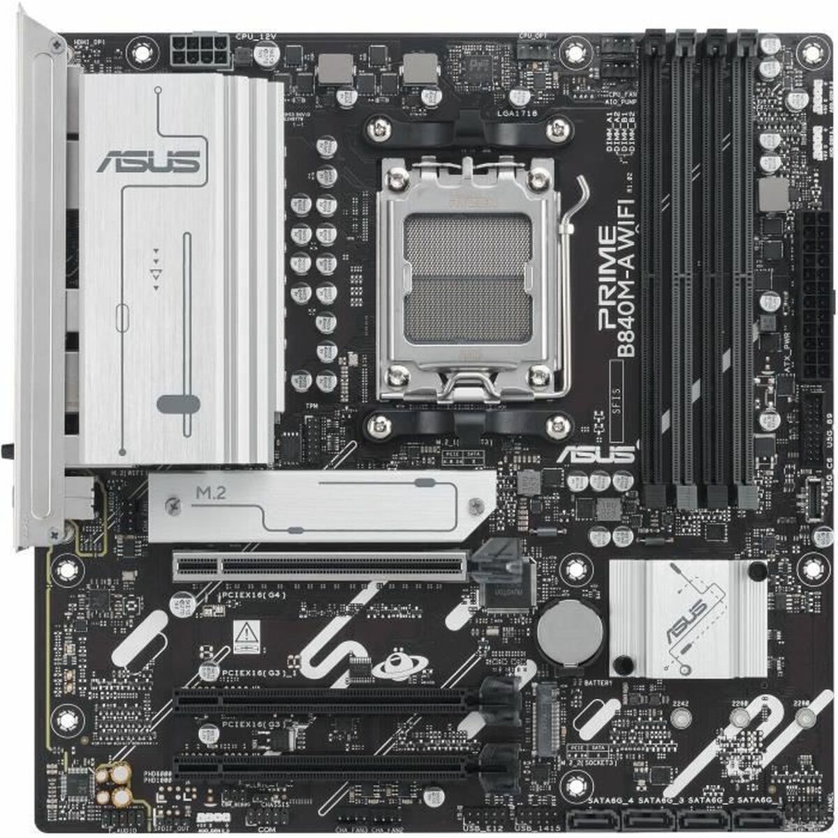 A placa-mãe ASUS PRIME B840M-A WIFI modelo 90MB1J20-M0EAY0 é uma solução robusta e versátil projetada para sistemas com processadores AMD, incorporando o socket AMD AM5 e o chipset AMD B840, garantindo compatibilidade e desempenho eficiente para configurações modernas de gaming e uso geral. Seu fator de forma MicroATX (mATX) favorece montagens compactas sem perder funcionalidade, ideal para usuários que buscam otimizar espaço sem abrir mão de opções de expansão. Destaca-se por integrar conectividade de última geração com suporte a Intel Wi-Fi 6, assegurando conexões sem fio estáveis e rápidas, essenciais para multitarefa e transmissão fluida de dados. Em termos de portas e conectividade, oferece saídas HDMI para conexão simples a monitores e TVs, além de múltiplas interfaces USB e USB-C, facilitando a ligação de periféricos modernos e dispositivos de armazenamento externos. Seu design em tons cinza confere uma estética discreta e profissional, enquanto a compatibilidade com tecnologias atuais da AMD garante suporte às arquiteturas mais recentes, otimizando o desempenho do processador e a gestão energética. Esta placa-mãe é ideal para usuários que precisam de uma base sólida para montar um sistema equilibrado, combinando capacidade de processamento eficaz e conectividade avançada em formato compacto e funcional. Em resumo, a ASUS PRIME B840M-A WIFI representa uma plataforma confiável e atualizada para projetos de computação com tecnologias AMD e demandas modernas de rede e multimídia.