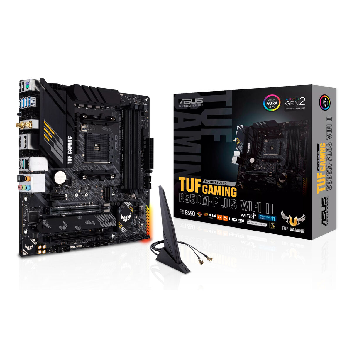 A Placa Base ASUS TUF GAMING B550M-PLUS WIFI II da Asus é uma Placa Base concebida para utilizadores que precisam de uma plataforma robusta e eficiente compatível com processadores AMD. Baseada no chipset AMD B550, esta placa suporta sockets AM4, permitindo instalar uma ampla gama de CPUs AMD Ryzen de última geração e desfrutar de desempenho equilibrado tanto em tarefas intensivas como em jogos. O seu formato MicroATX (mATX) facilita a integração em caixas compactas sem perder capacidade de expansão nem funcionalidades avançadas. Esta placa inclui conectividade sem fios de alta qualidade graças ao chipset Intel Wi-Fi 6, que oferece ligações estáveis e rápidas, ideais para streaming e jogos online. Além disso, dispõe de múltiplas portas de entrada e saída, incluindo HDMI para vídeo em alta definição, portas USB e USB-C para transferências rápidas e compatibilidade com periféricos modernos, bem como uma porta PS/2 para dispositivos mais antigos. O suporte para memória DDR4 SDRAM garante acesso rápido e eficiente aos dados, melhorando a resposta geral do sistema. A combinação destes elementos na ASUS TUF GAMING B550M-PLUS WIFI II oferece uma base sólida para construir sistemas de secretária orientados para durabilidade, estabilidade e bom desempenho, tanto para atividades profissionais como para jogos. O seu design e componentes são direcionados a utilizadores que procuram uma placa base versátil, com conectividade avançada e uma plataforma preparada para as exigências atuais.